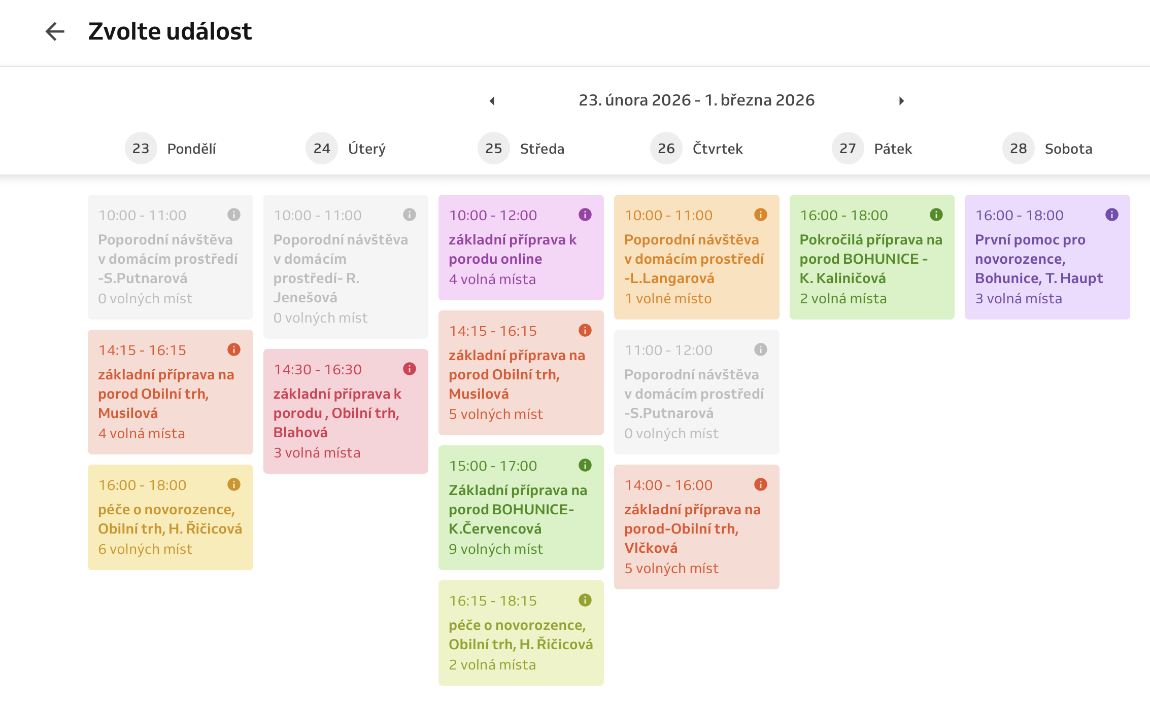 - Přes rezervační systém Reservio si vyberte volný termín kurzu Poporodní návštěva v domácím prostředí.